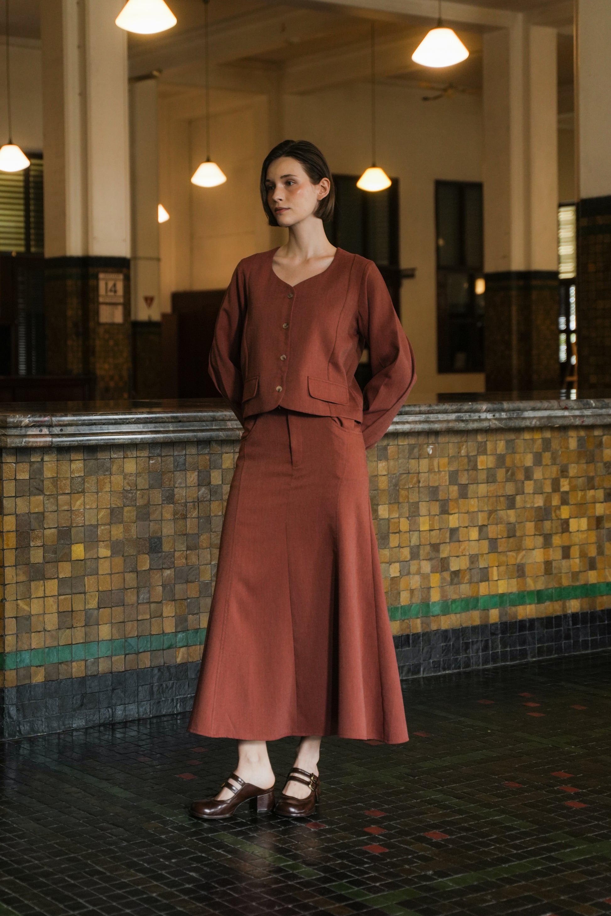 - Koda Skirt brings flowy elegance to the outfit with its maxi length and flattering silhouette.