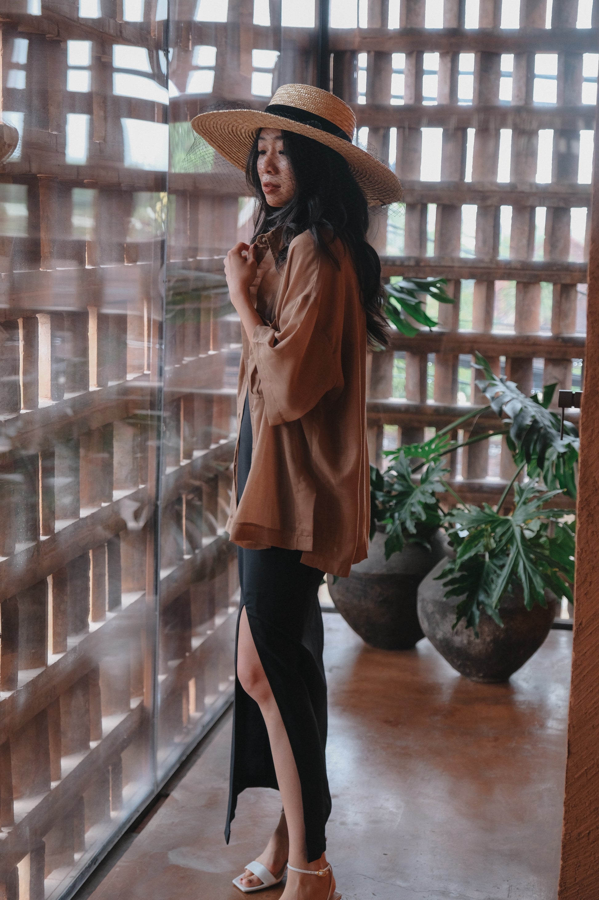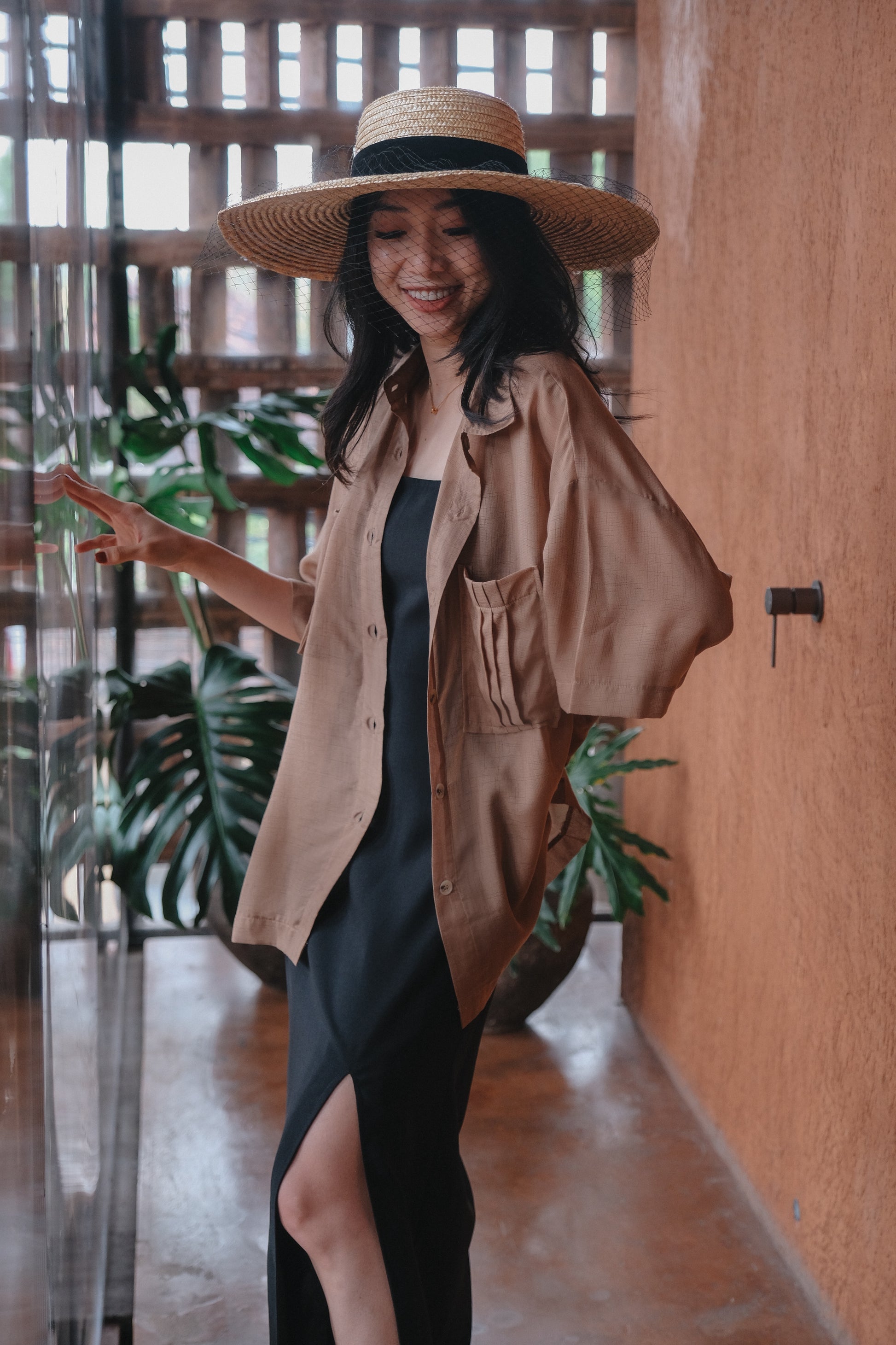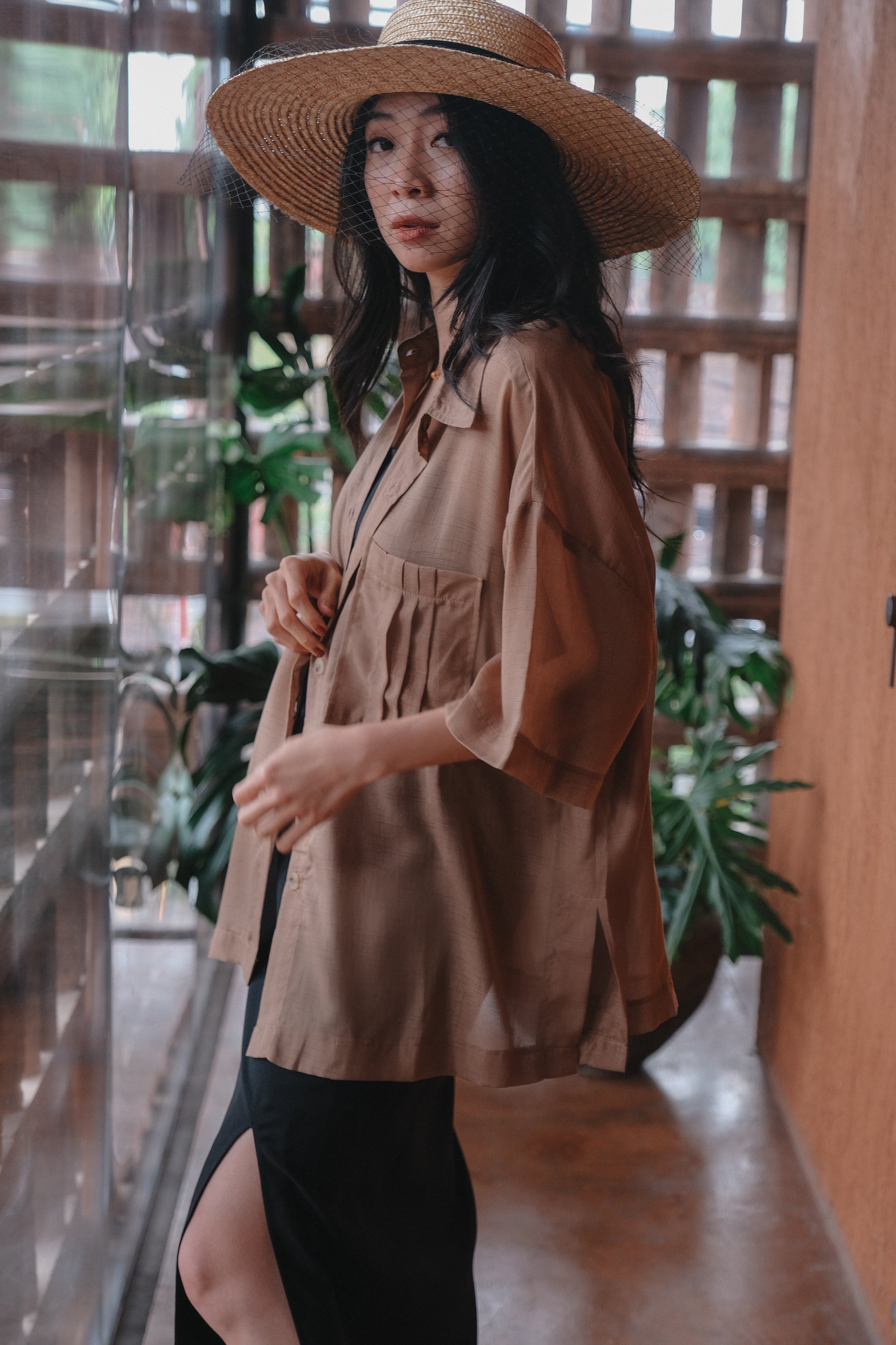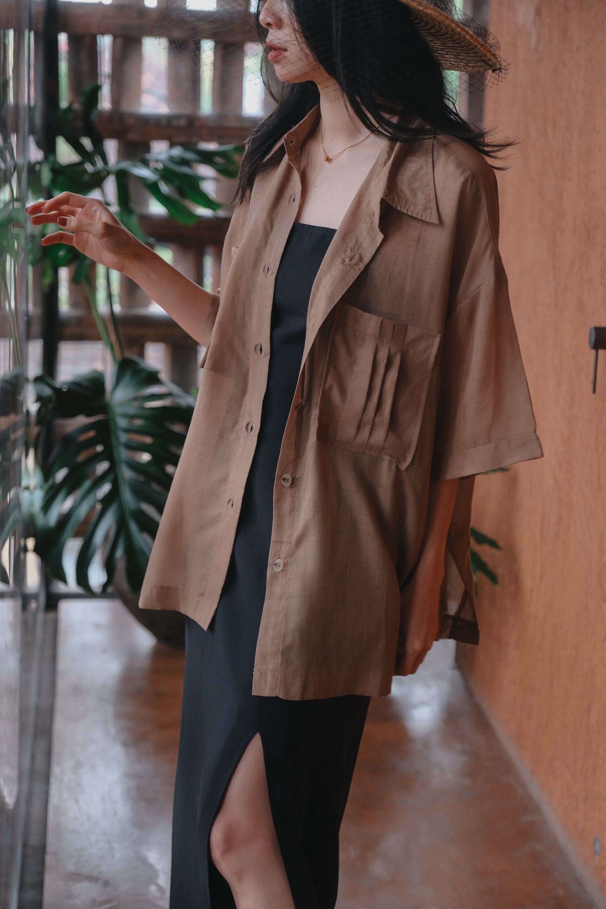 - An oversized shirt, short sleeve, made from premium silk, see thru.