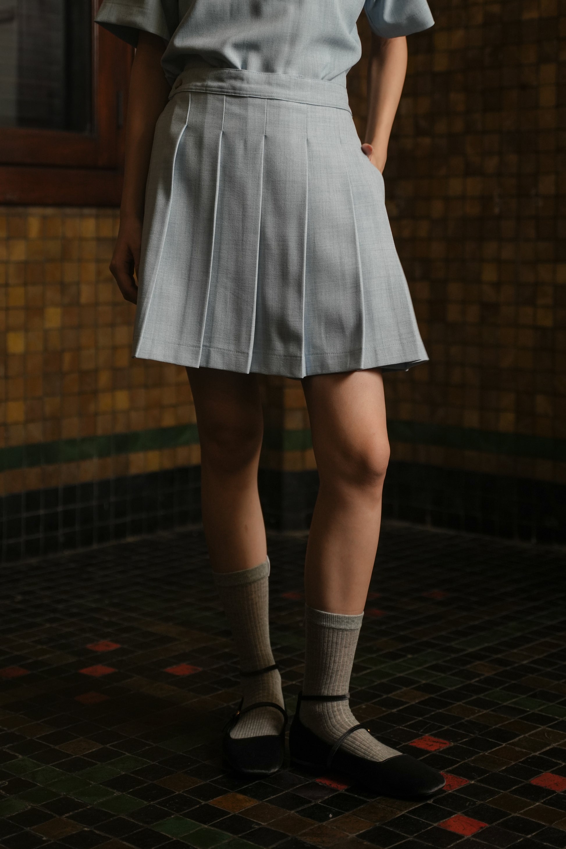 - A cutie skort with pockets on the side, adjustable waist on the back.