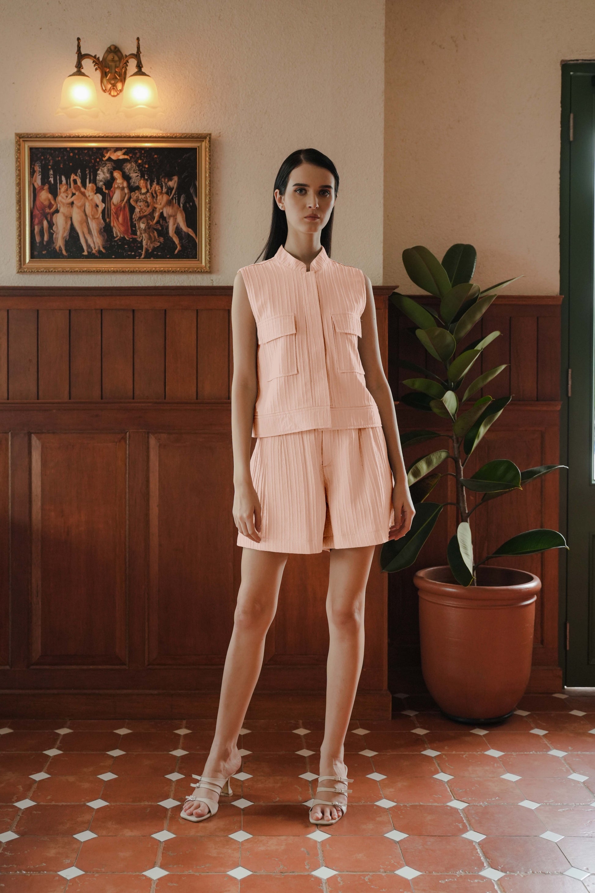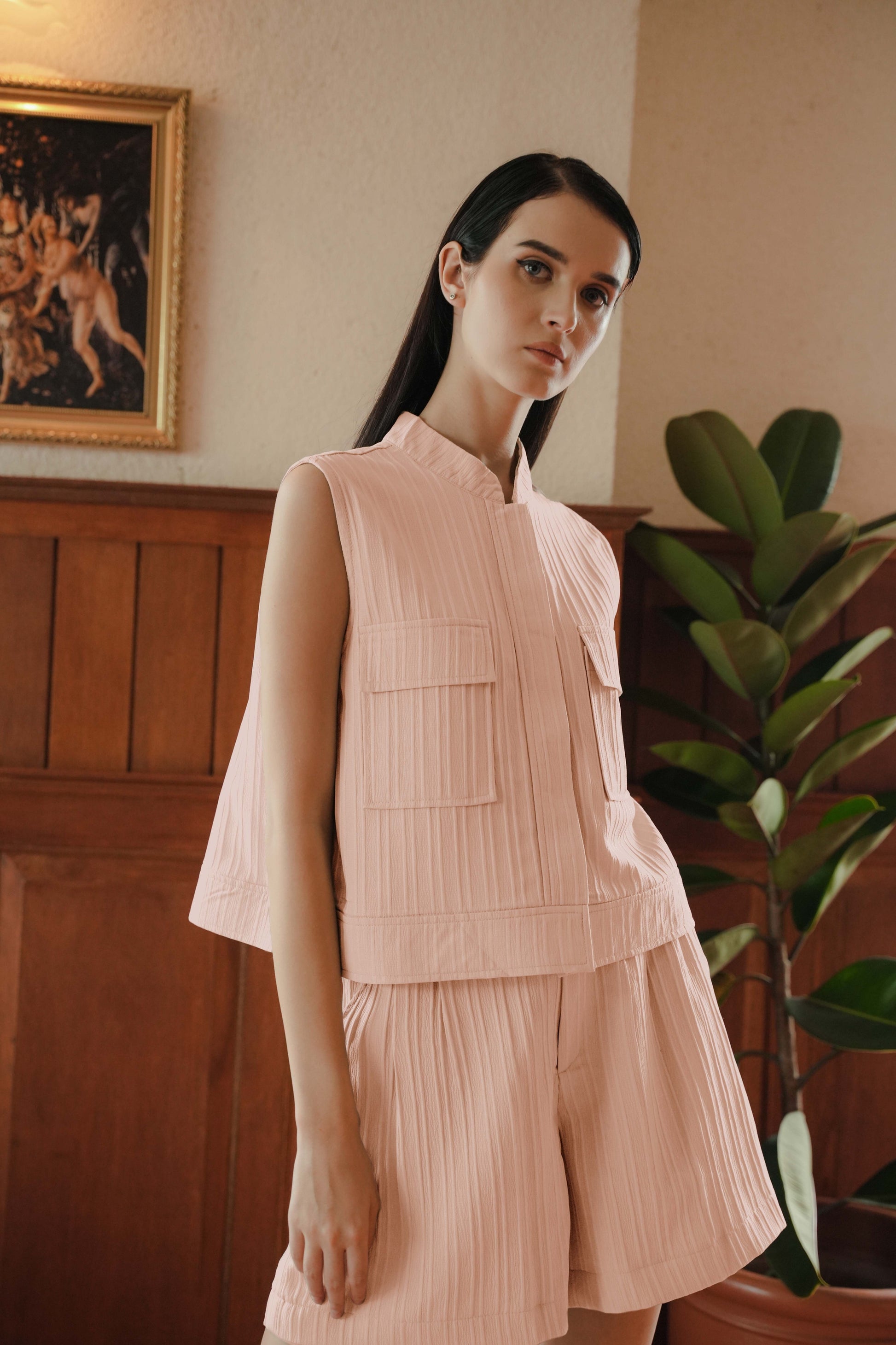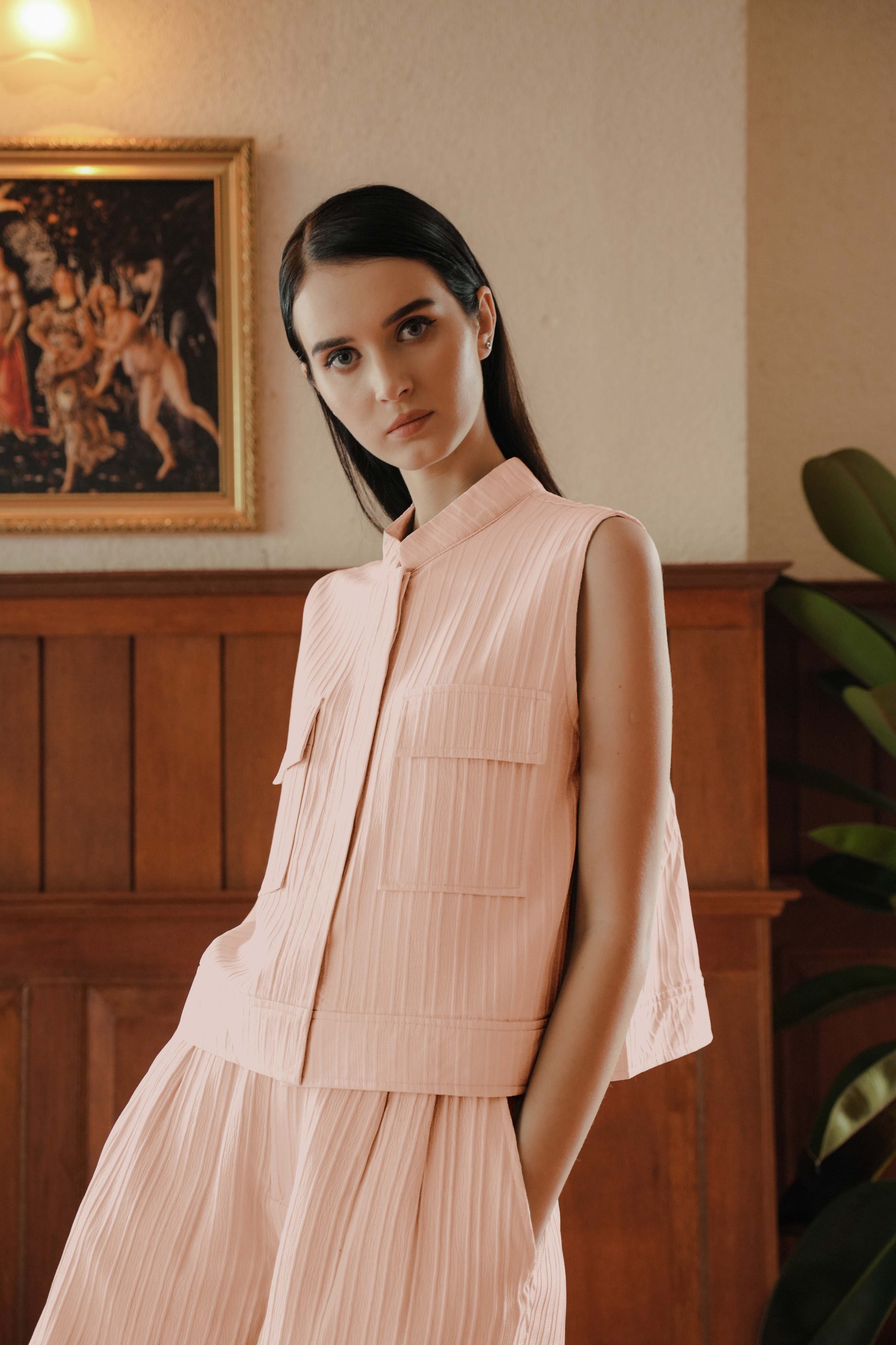 LOUVRE TOP SLEEVELESS IN PALE ROSETTE