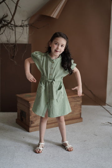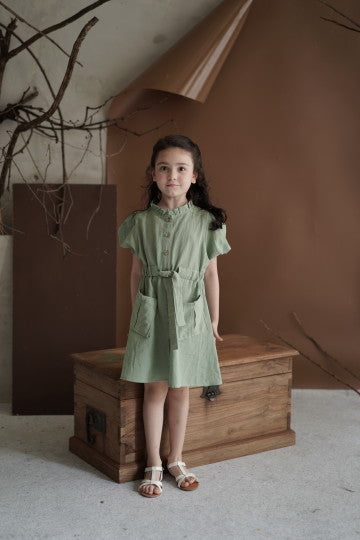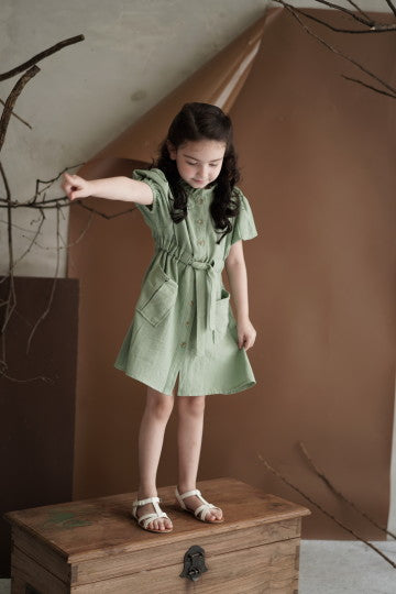 - Mid lenght sleeve midi dress with 4 front pockets and adjustable waist tie. Can be worn as an outer. All size fit to L