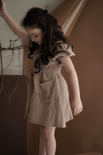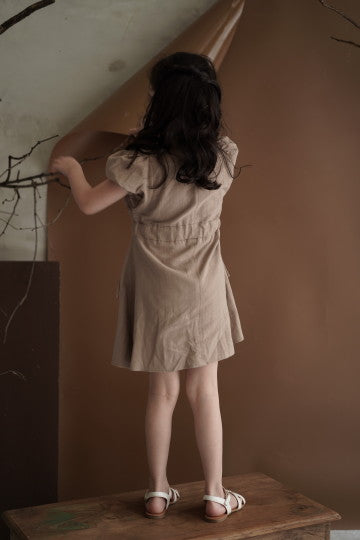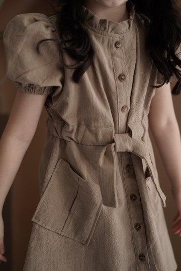 - Mid lenght sleeve midi dress with 4 front pockets and adjustable waist tie. Can be worn as an outer. All size fit to L
