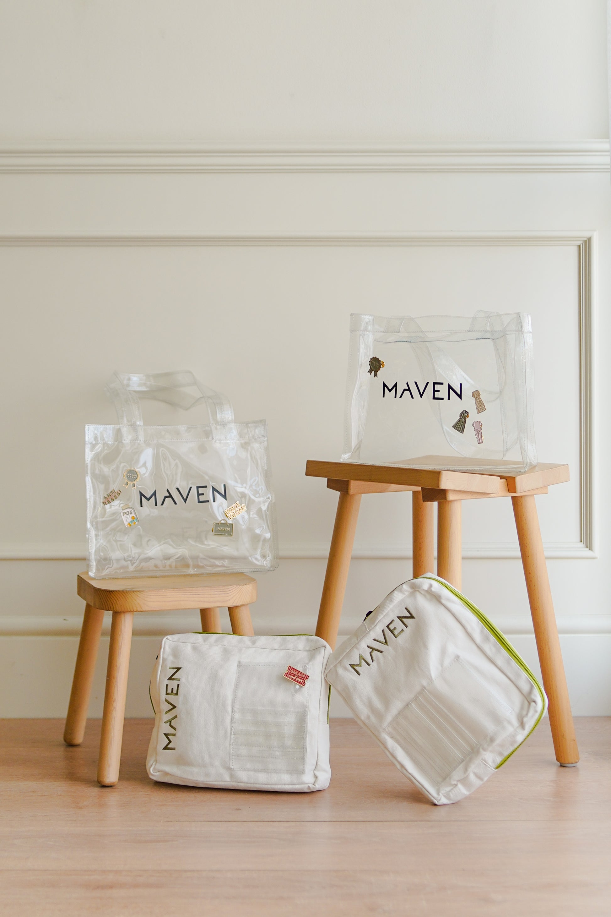 - Put maven enamel pin on the clear / canvas bag to make itu preetier.