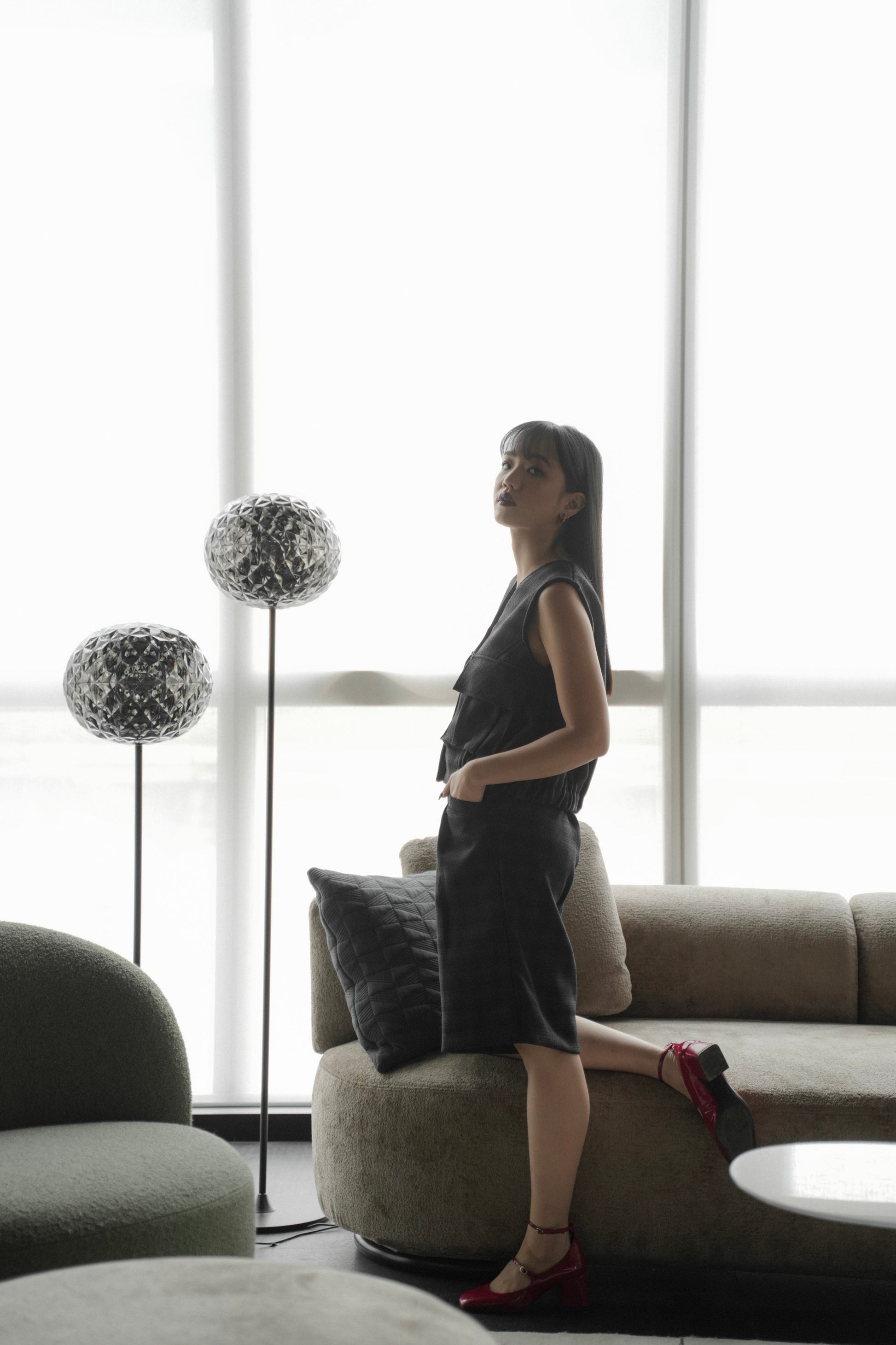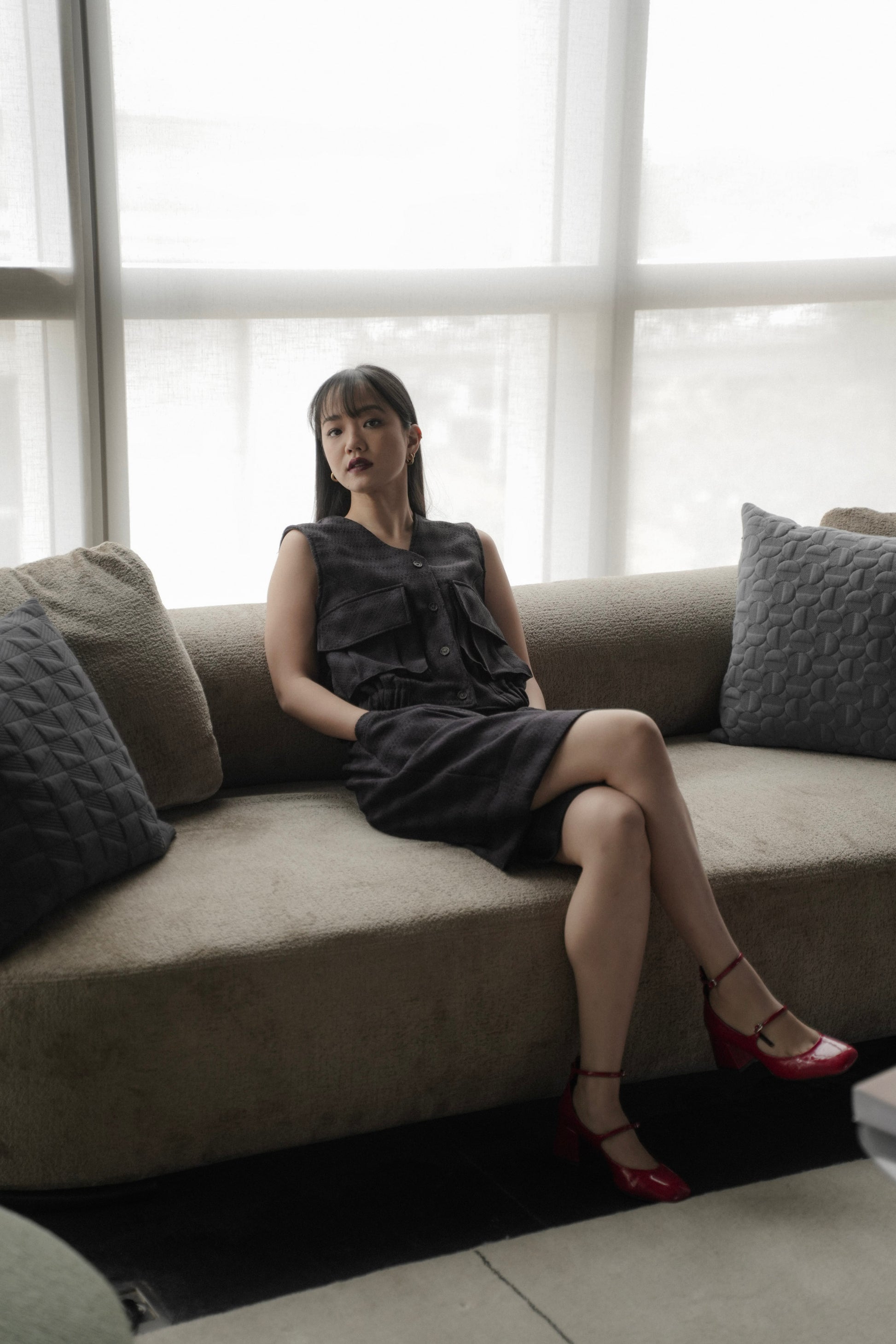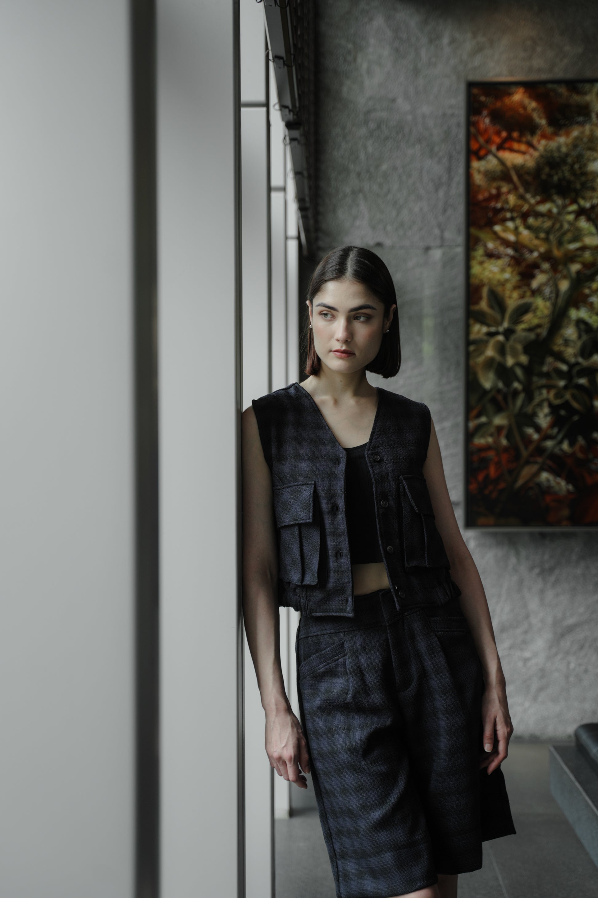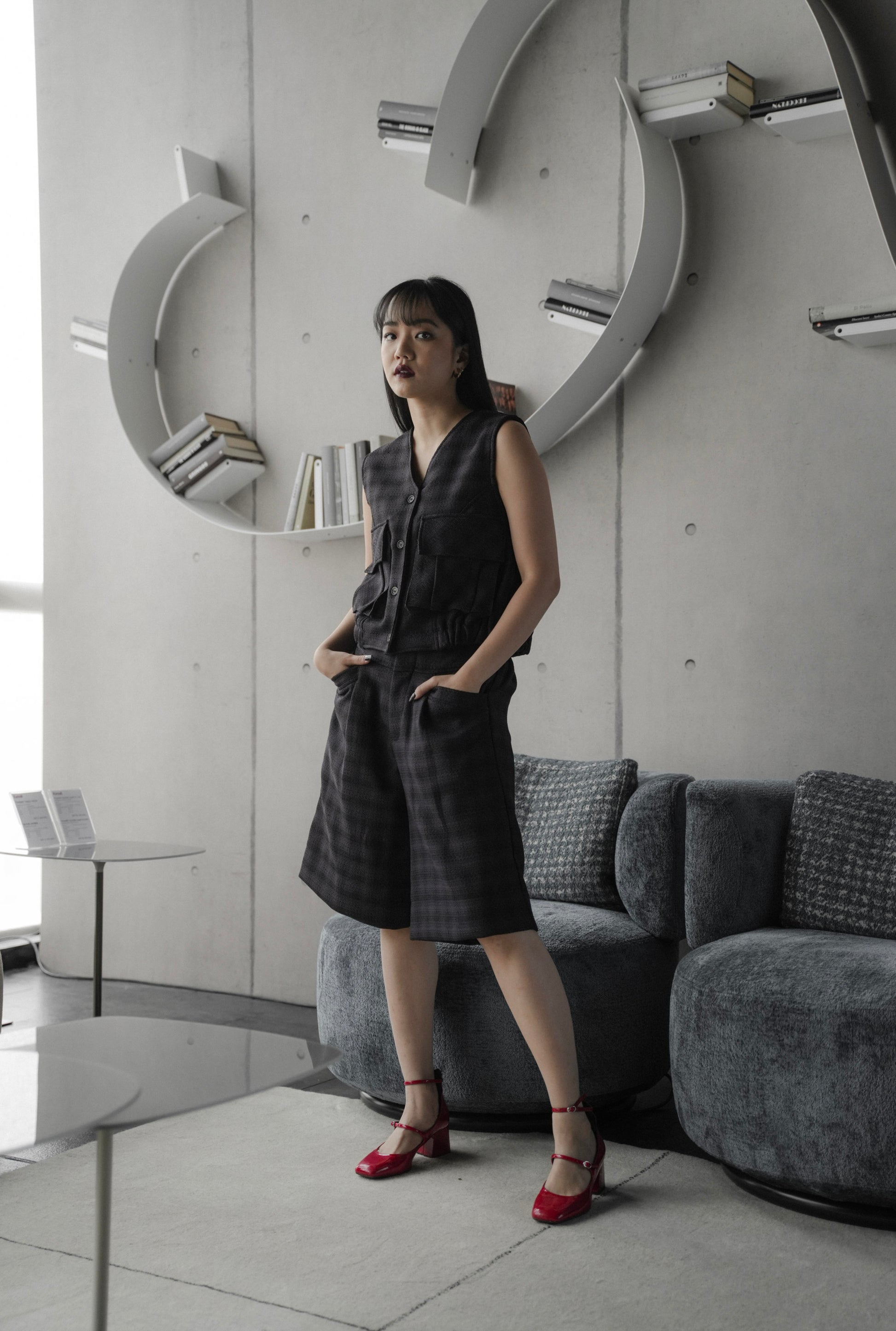 - Set of BEAMS top and SUKI pants. The tweed finished details all over, the oversized blazer, the colors and the festive vibes are all to die for!!