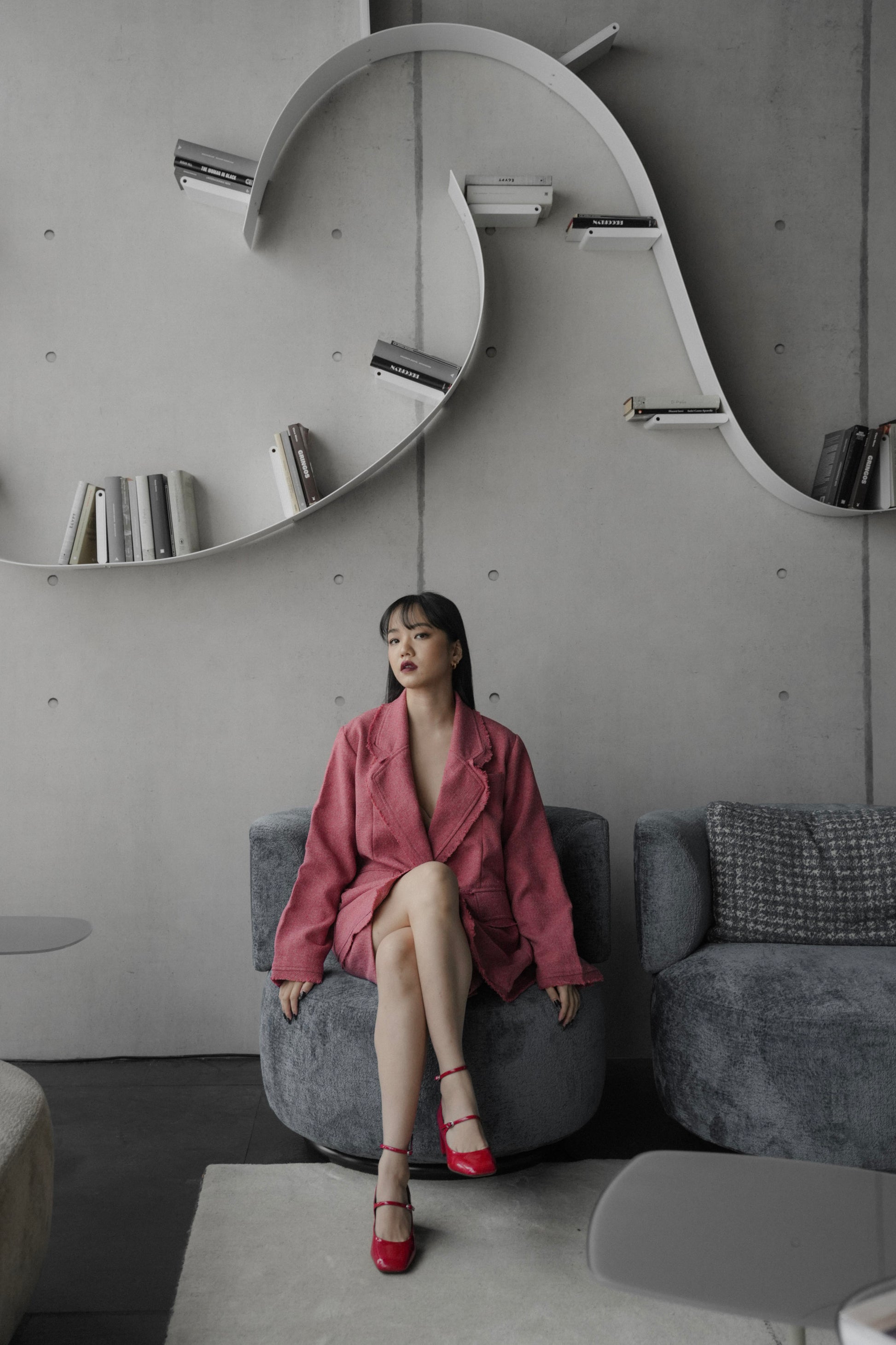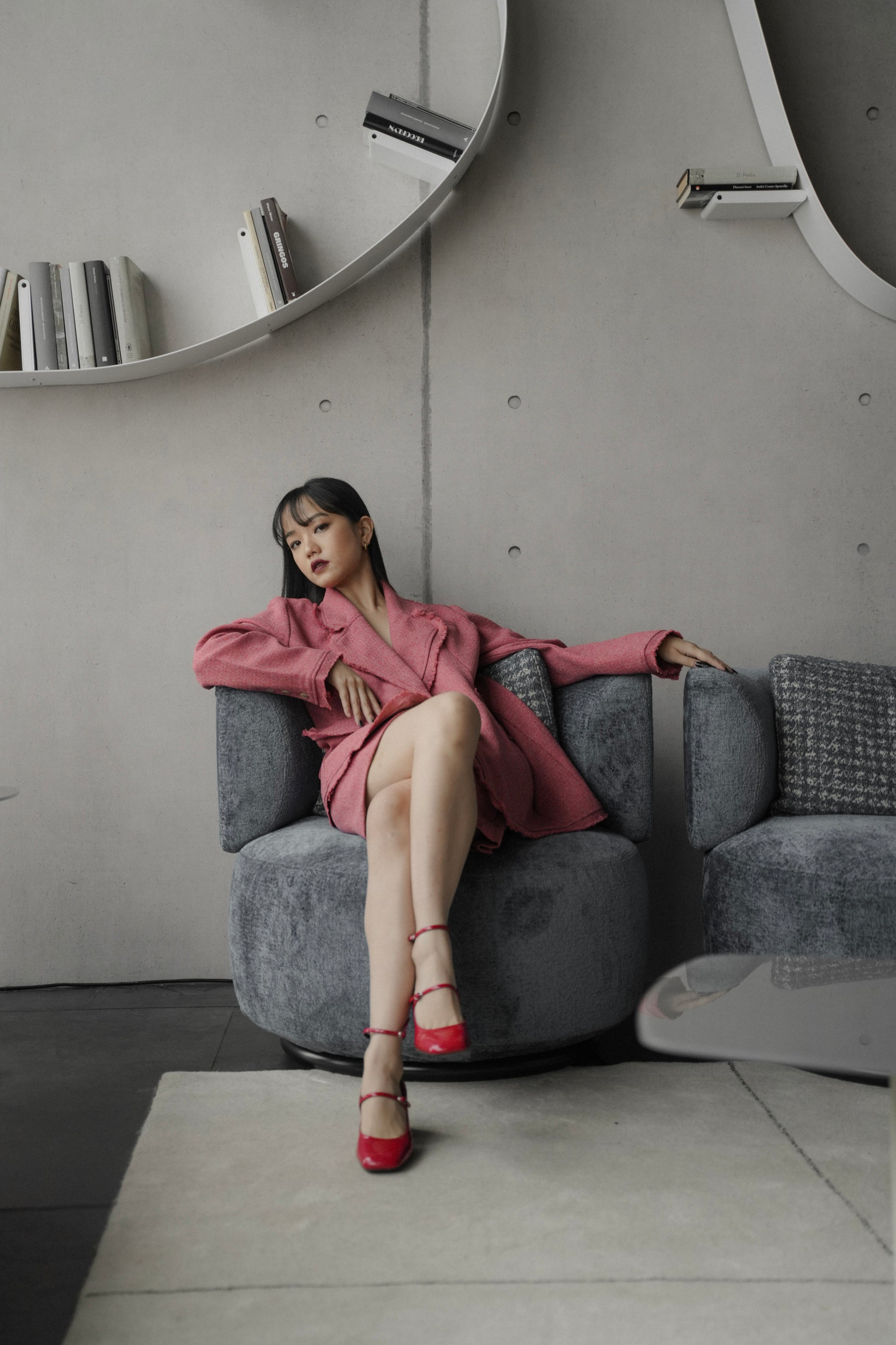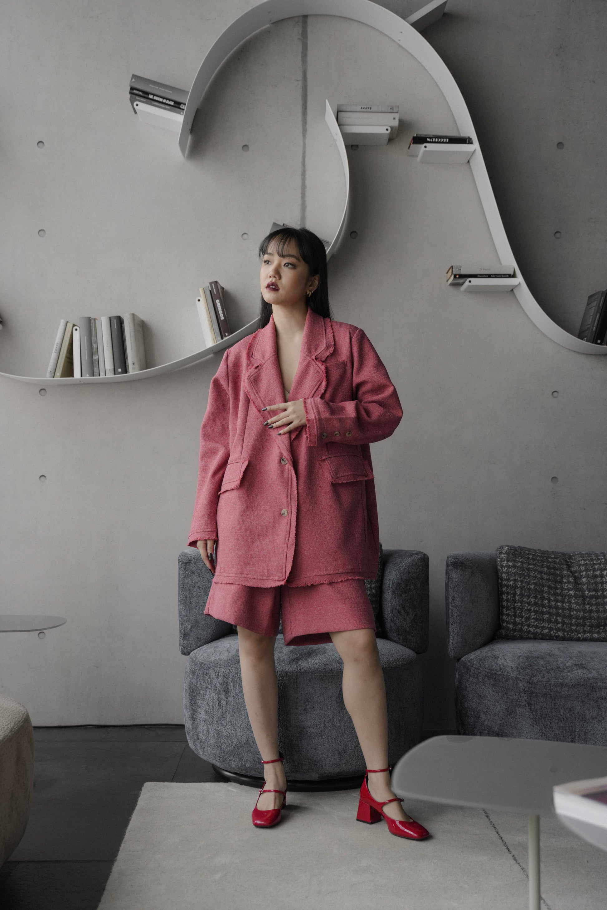 - Set of ELXIEL blazer and SUKI pants. The tweed finished details all over, the oversized blazer, the colors and the festive vibes are all to die for!!